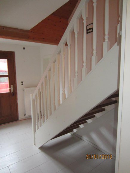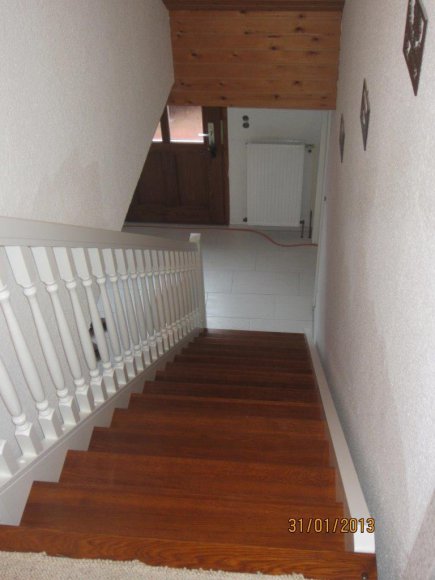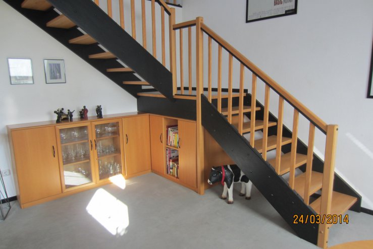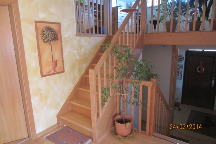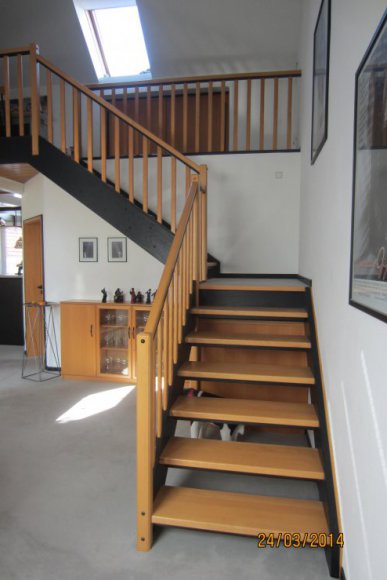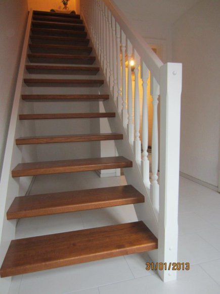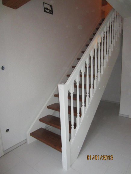 Stufen Eiche gebeizt Geländer u. Wangen Weiß